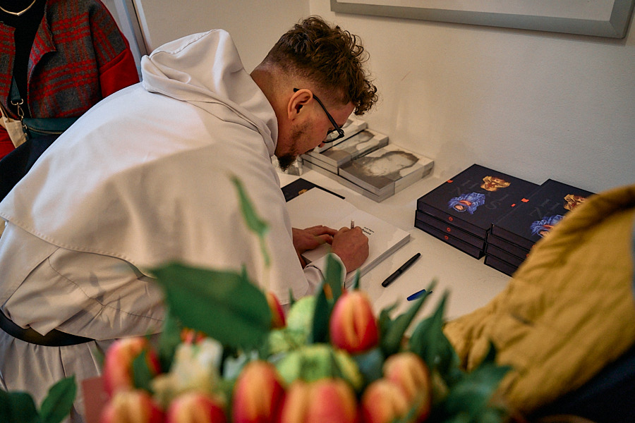 Muszę przyznać, że nie każdy portret mi wyszedł. Czasami siedząc z ołówkiem przed tak wielką tajemnicą, nie potrafiłem zacząć, zrobić pierwszej kreski. Było to doświadczenie paraliżujące. Uznaję te nieudane portrety za świadectwo mojej niemocy. Wiedzcie, że te, które was poruszą, są zaś świadectwem mocy. Owa moc jest pocałunkiem samego Boga, nie pochodzi ode mnie, pozwoliłem Mu tylko działać i nie przeszkadzałem swoim warsztatem.