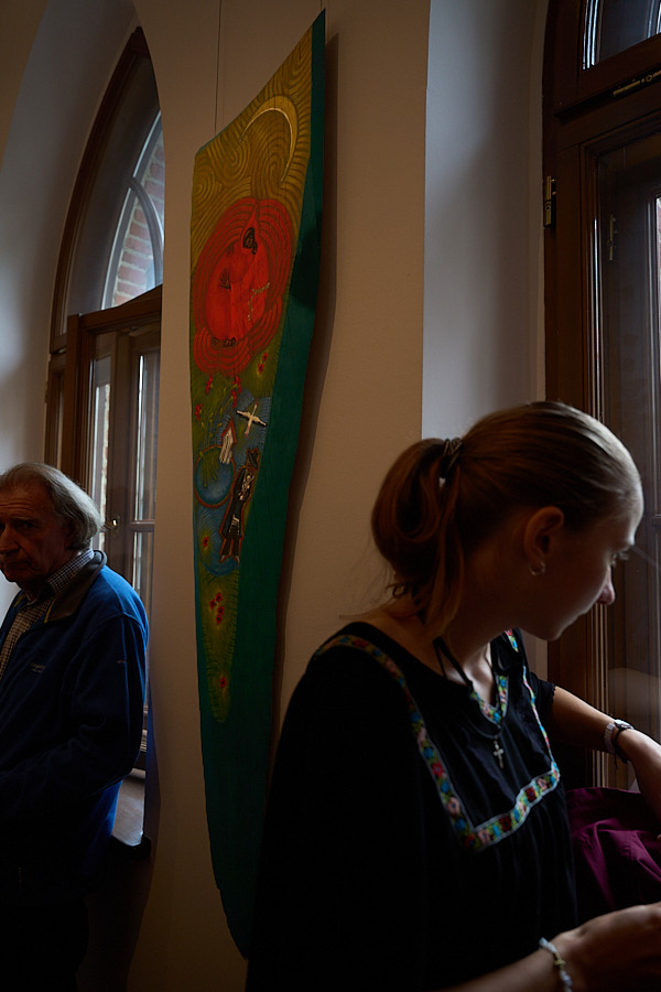 „Słoneczna Pieśń nad Pieśniami”, autorstwa brata Marcina Świądra kapucyna, to cykl prac inspirowanych ikonografią. W złożonych kompozycjach przenikają się epizody z życia św. Franciszka z Asyżu, obrazy z „Pieśni nad Pieśniami” oraz „Pieśni Słonecznej”. 800-lecie powstania tej ostatniej, wraz z całą rodziną franciszkańską, świętujemy w tym roku. „Pieśń nad Pieśniami” opiewa oblubieńczą miłość Boga do Ludu Wybranego, która w Chrystusie objawia swój uniwersalny aspekt obejmując całą ludzkość. Franciszkowe wołanie, wychwalające Boga w „Pieśni Słonecznej”, wplata w ten miłosny taniec całą naturę. W lekturze obu pieśni ukryte są klucze mistagogiczne do głębszego rozumienia symboliki prezentowanych obrazów.
